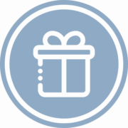 dłonie trzymające prezent z błękitną wstążeczką